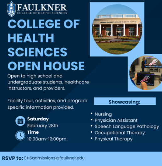 Faulker College of Health Sciences is hosting an Open House Saturday, February 28, 2026 from 10AM-12PM.